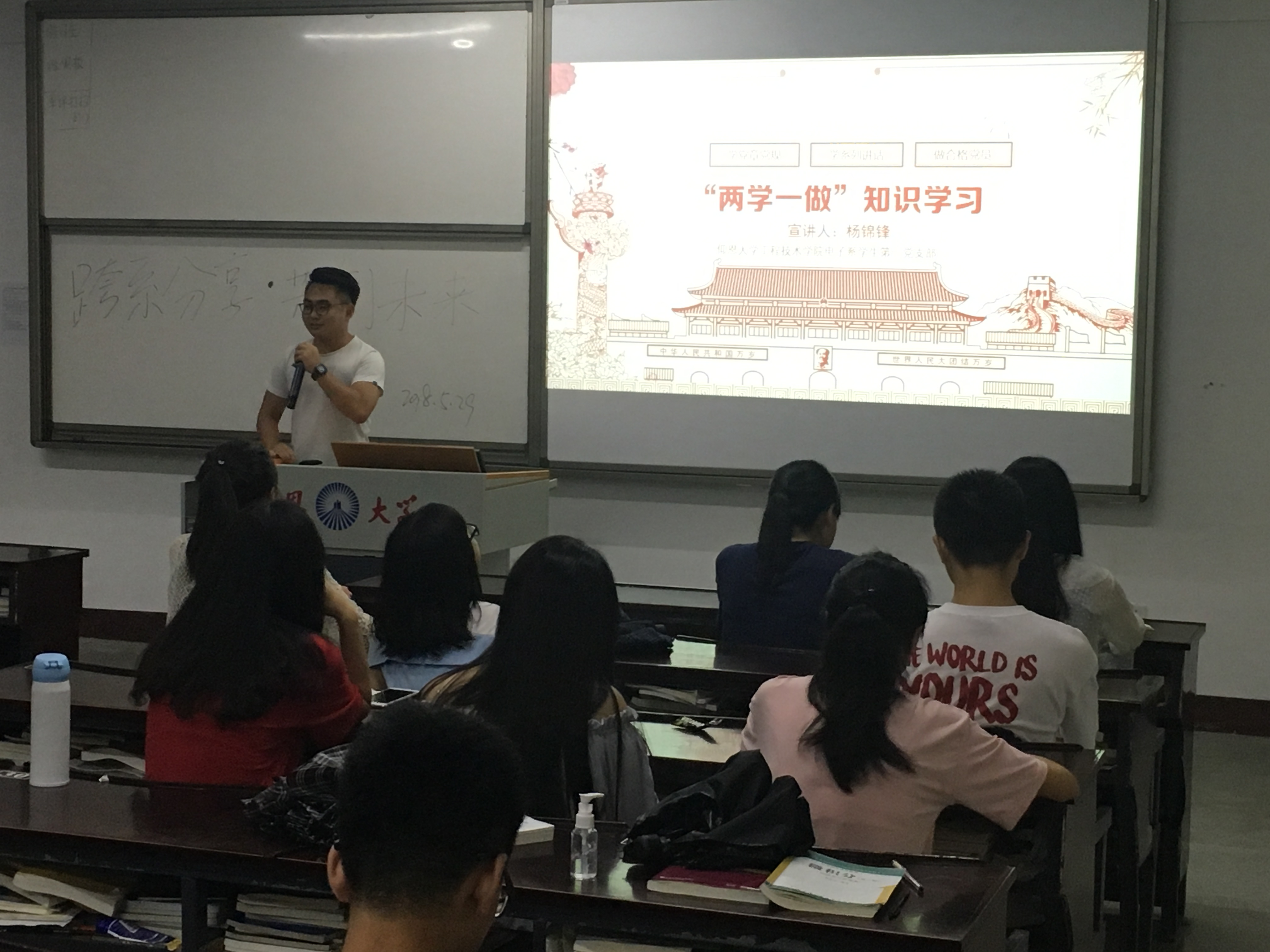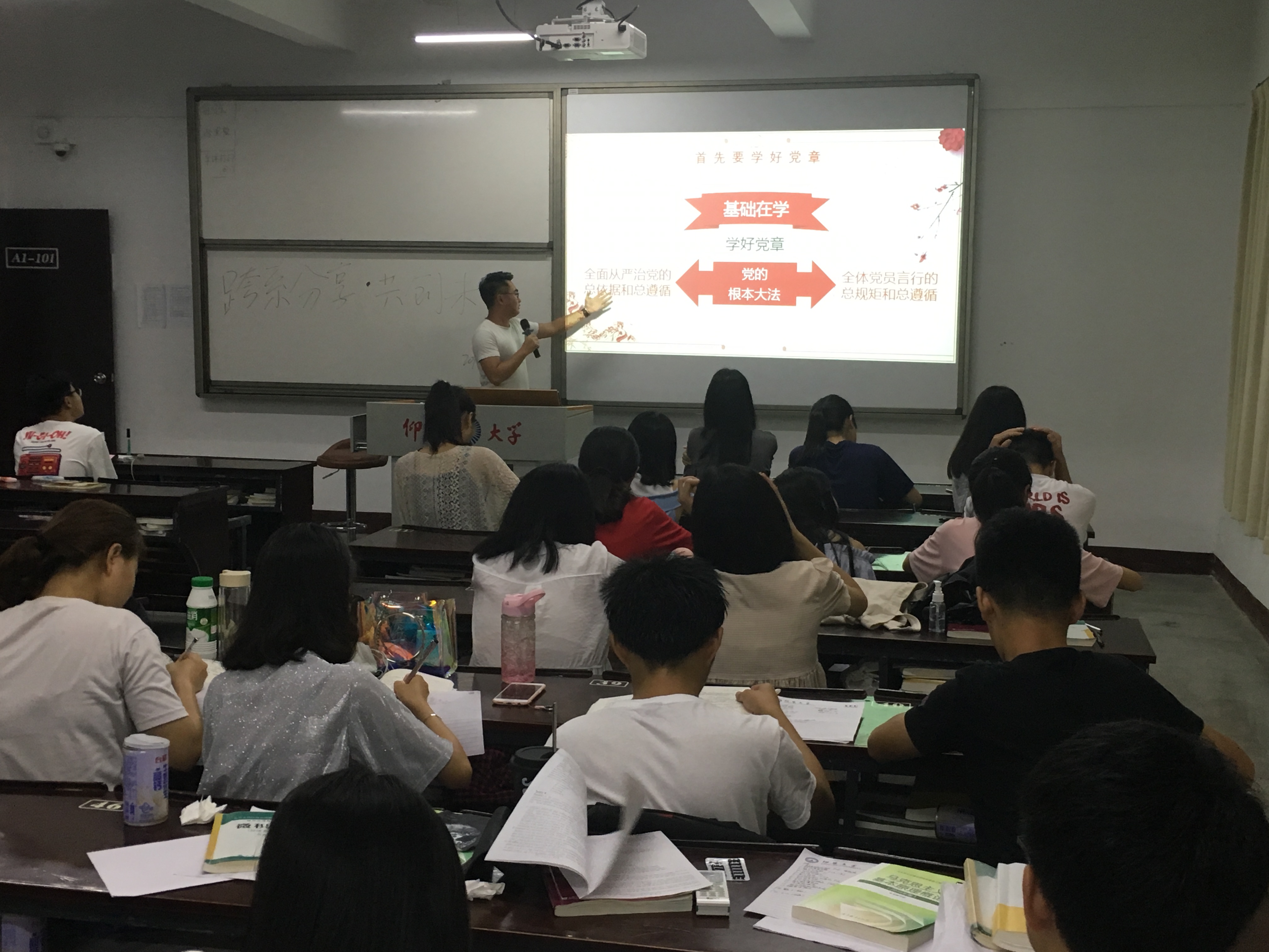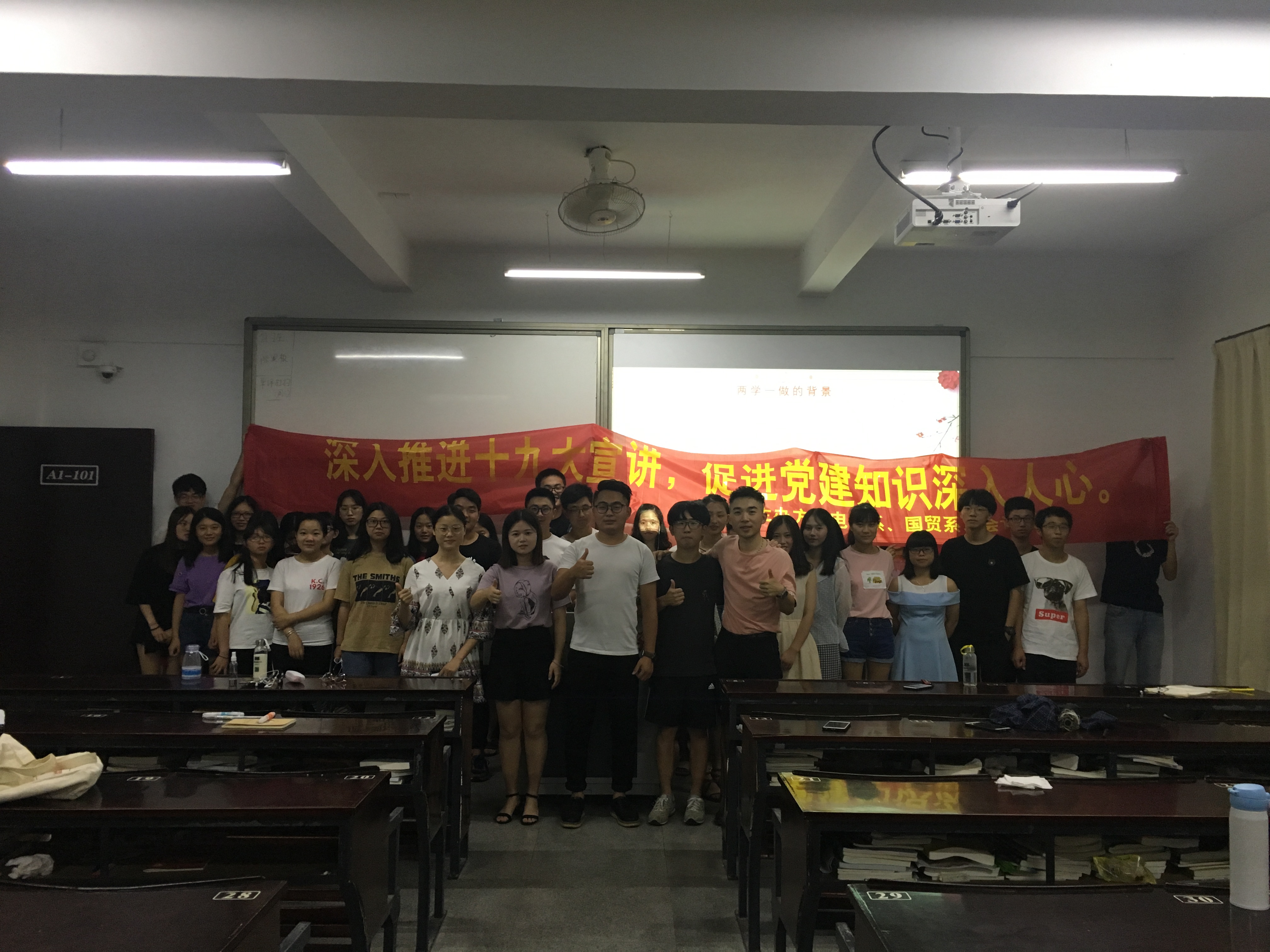 根据学院党总支要求各支部进行党支部立项活动,电子系学生第一党支部与国贸系、会计系一起开展“跨系分享·共创未来”讨论会,三个系支部分别在不同的班级进行宣讲讨论。2018年5月29日晚上kaiyun开云官方电子系学生第一党支部十九大宣讲小队对经济学院国际贸易专业的新生进行了党建知识的宣讲,出席本次活动的有经贸系学生第一党支部书记林晓富老师,三个系的活动负责人,以及经贸系17级全体学生。