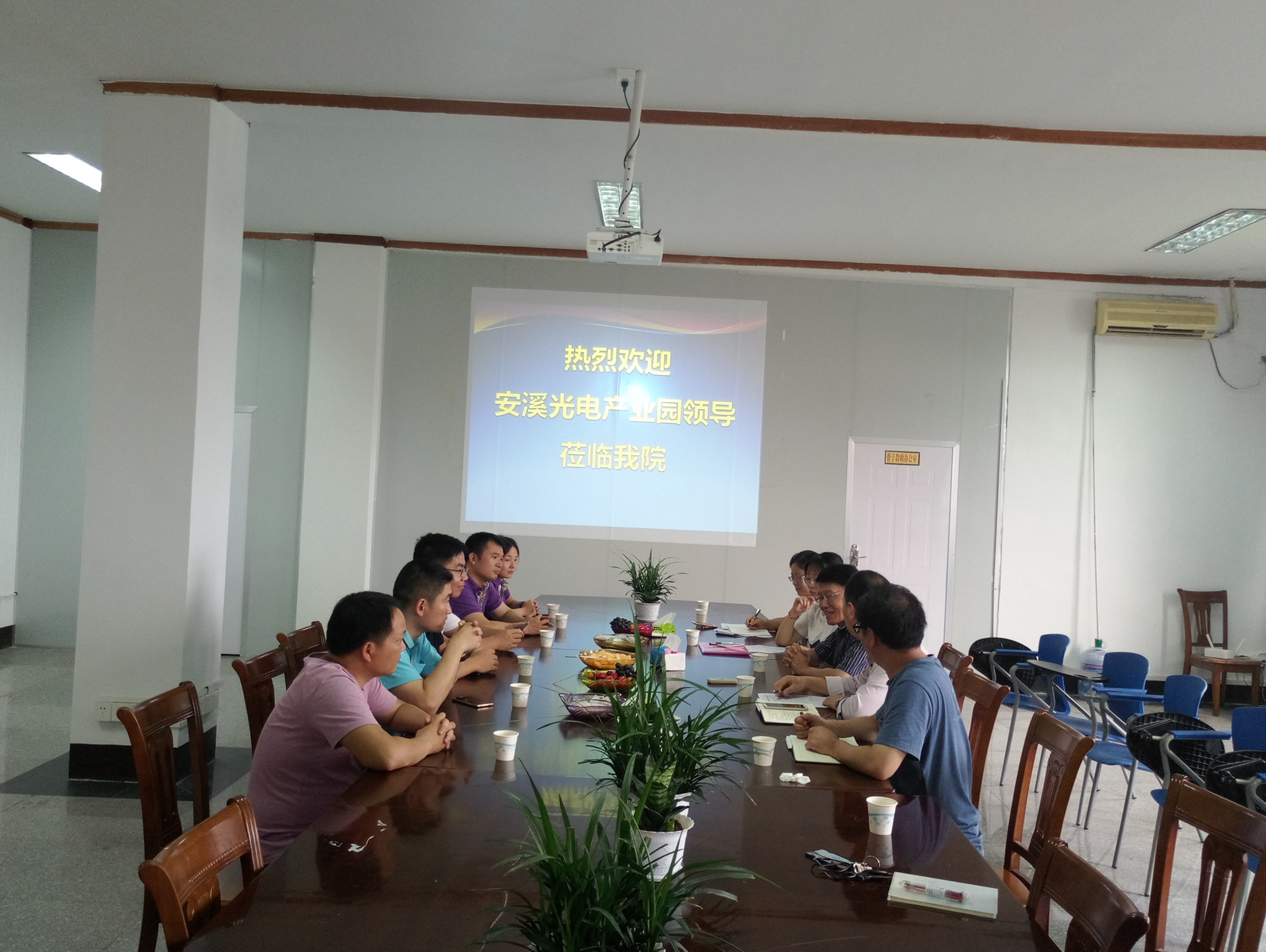 6月14日,泉州安溪光电产业园管委会副主任叶贤政带领晶安光电人力资源部经理陈伟锋、天电光电人力资源部经理张仁权等一行莅临kaiyun开云官方,就进一步深化校企合作、人才培养进行深度交流。校党委书记庄哲峰、kaiyun开云官方党总支书记兼副院长曾凤生、各系主任出席了会议。