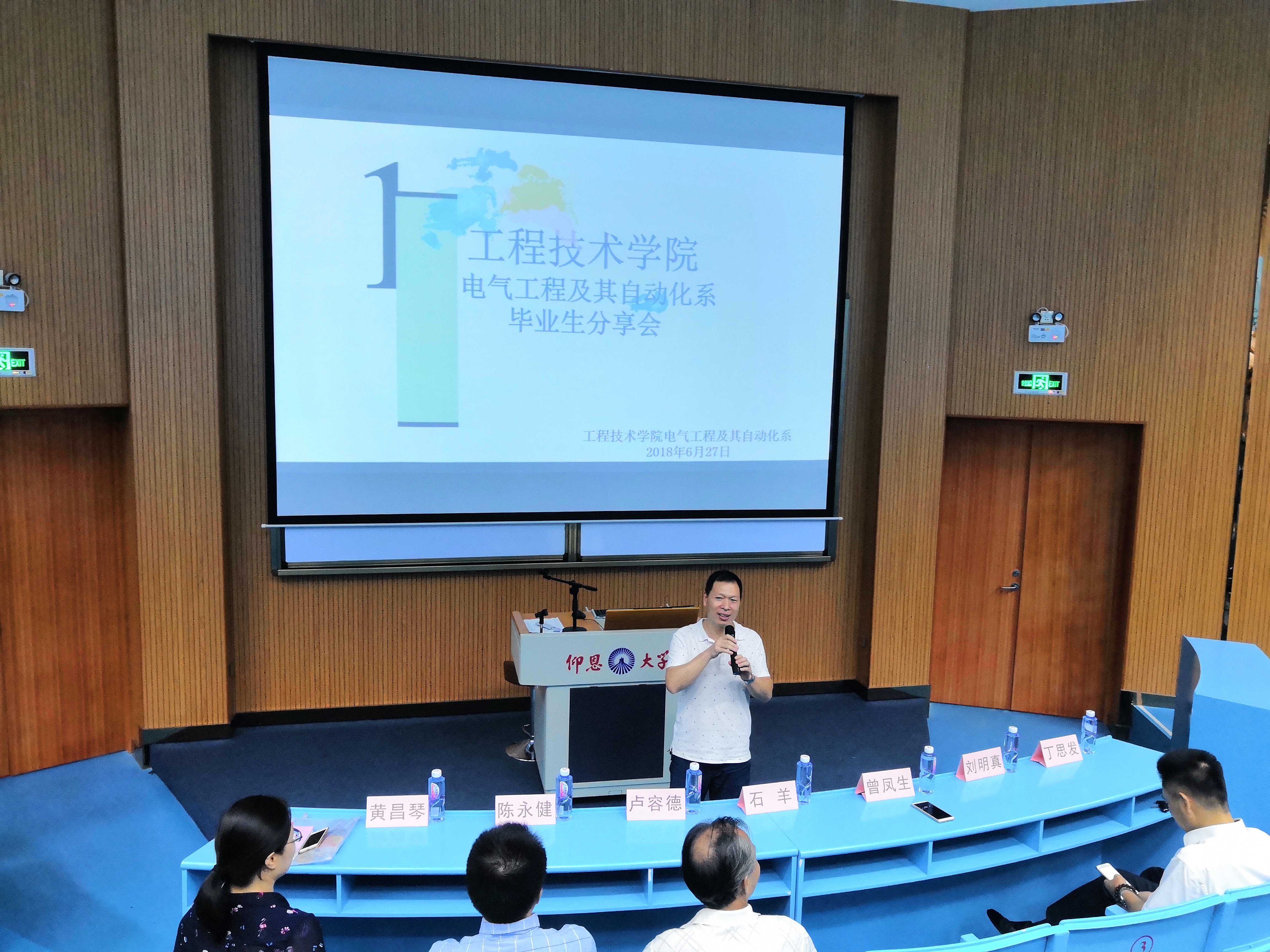6月27日晚7点,由kaiyun开云官方电气工程及其自动化系主办,kaiyun开云官方学生会协办的优秀毕业生分享大会在旧区和昌求是讲堂顺利召开。大会上荣幸邀请到kaiyun开云官方党总支书记曾凤生,电气系主任黄昌琴及电气系任课教师出席本次大会。