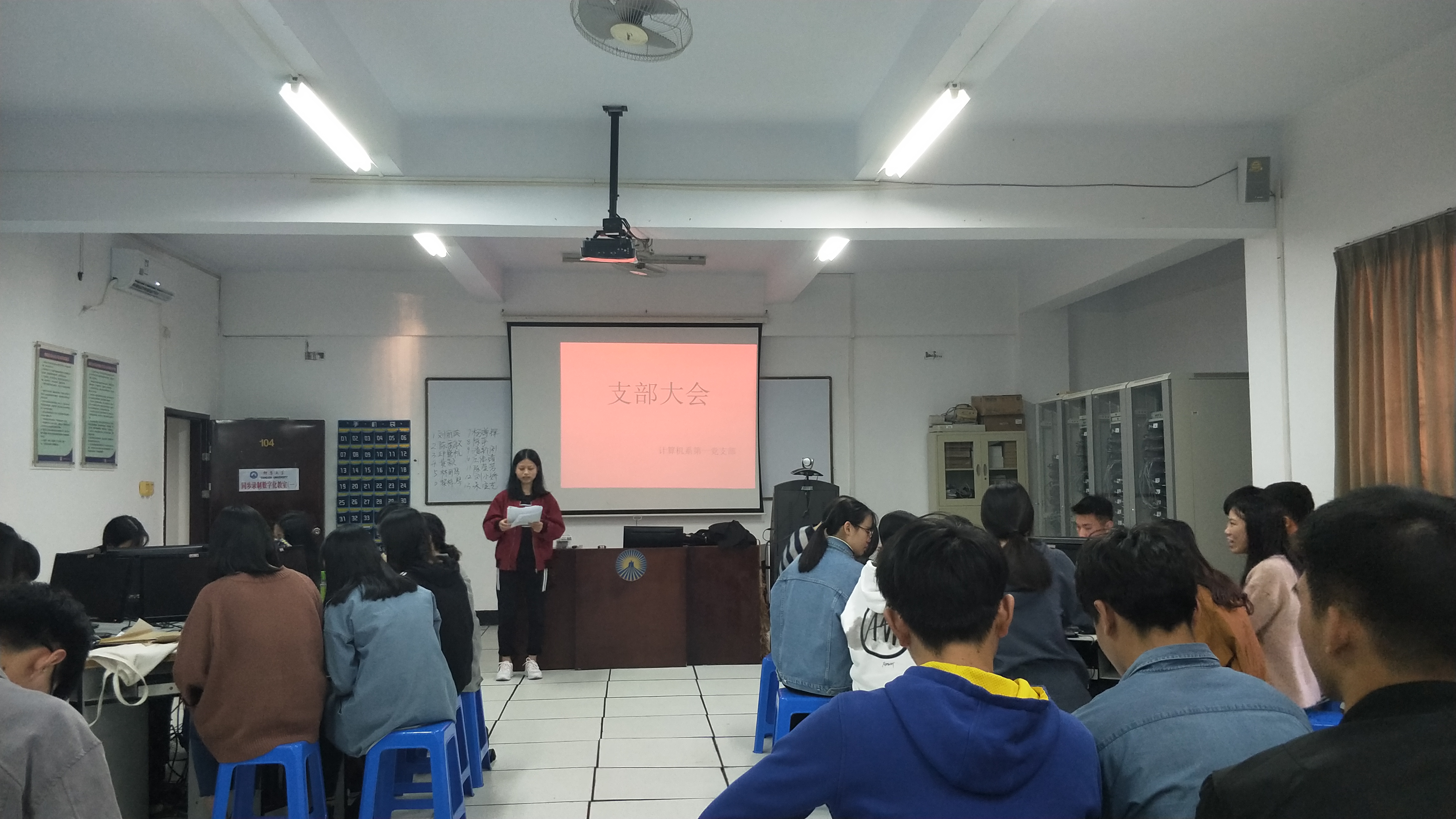 11月29日下午3点50分,计算机系第一党支部大会于泽川104室举行。此次会议由王波老师主持。
