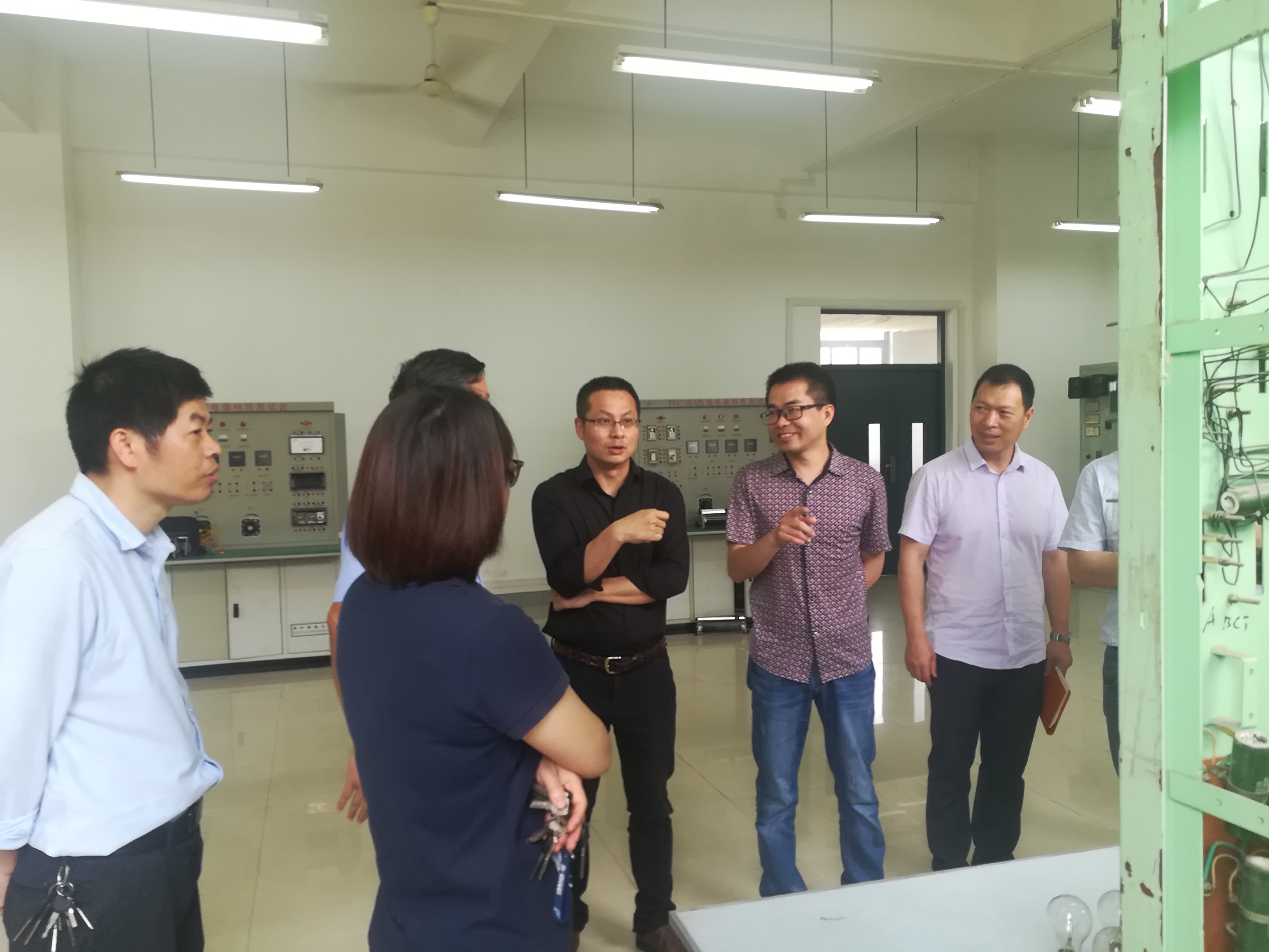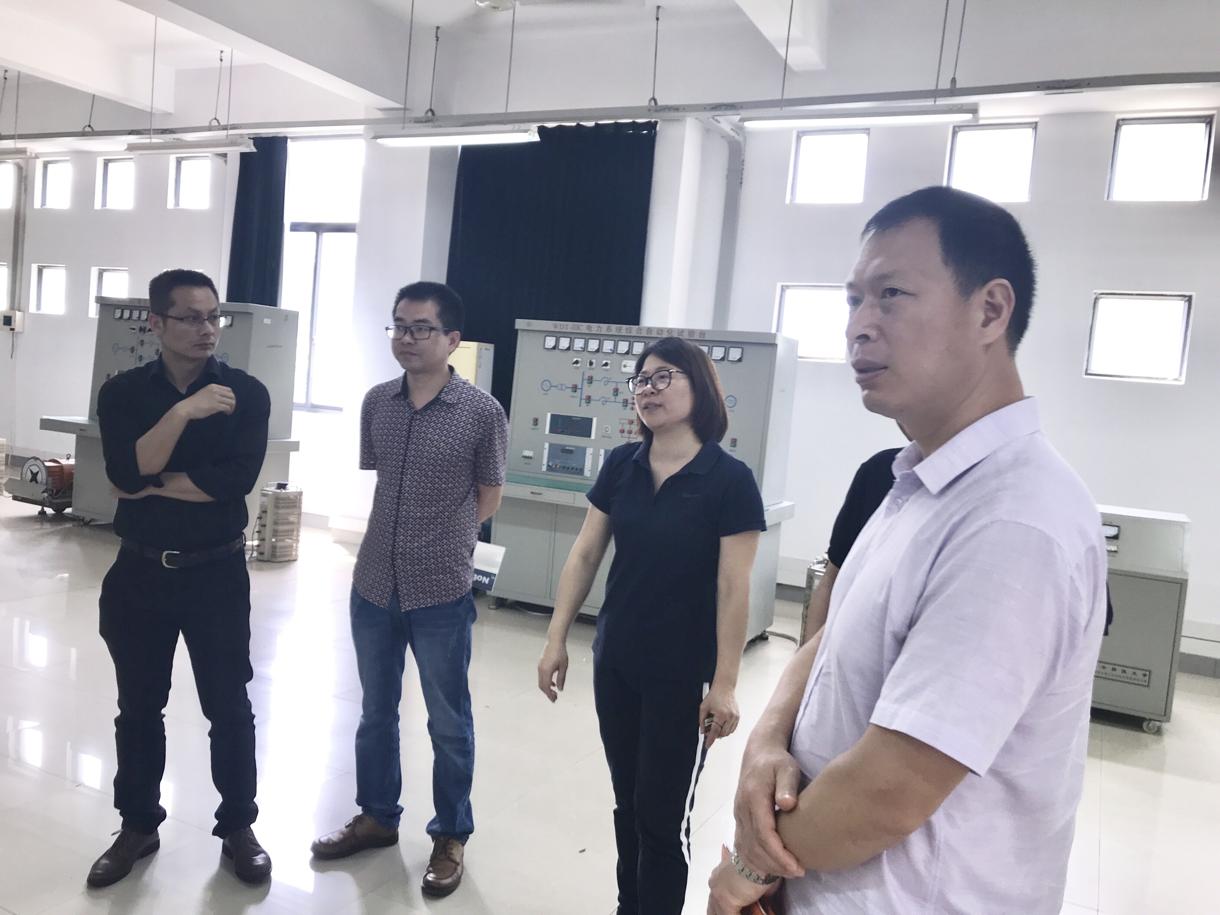会后,在林保全带领下参观了福大电气工程学院的专业实验室,对我们重点关注的电力电子及传动实验室、电机与拖动实验室、电力系统调度实验室、电力系统动模实验室等进行现场考察学习并深入了解专业实验室的建设经验、设备的使用情况及企业的售后服务。