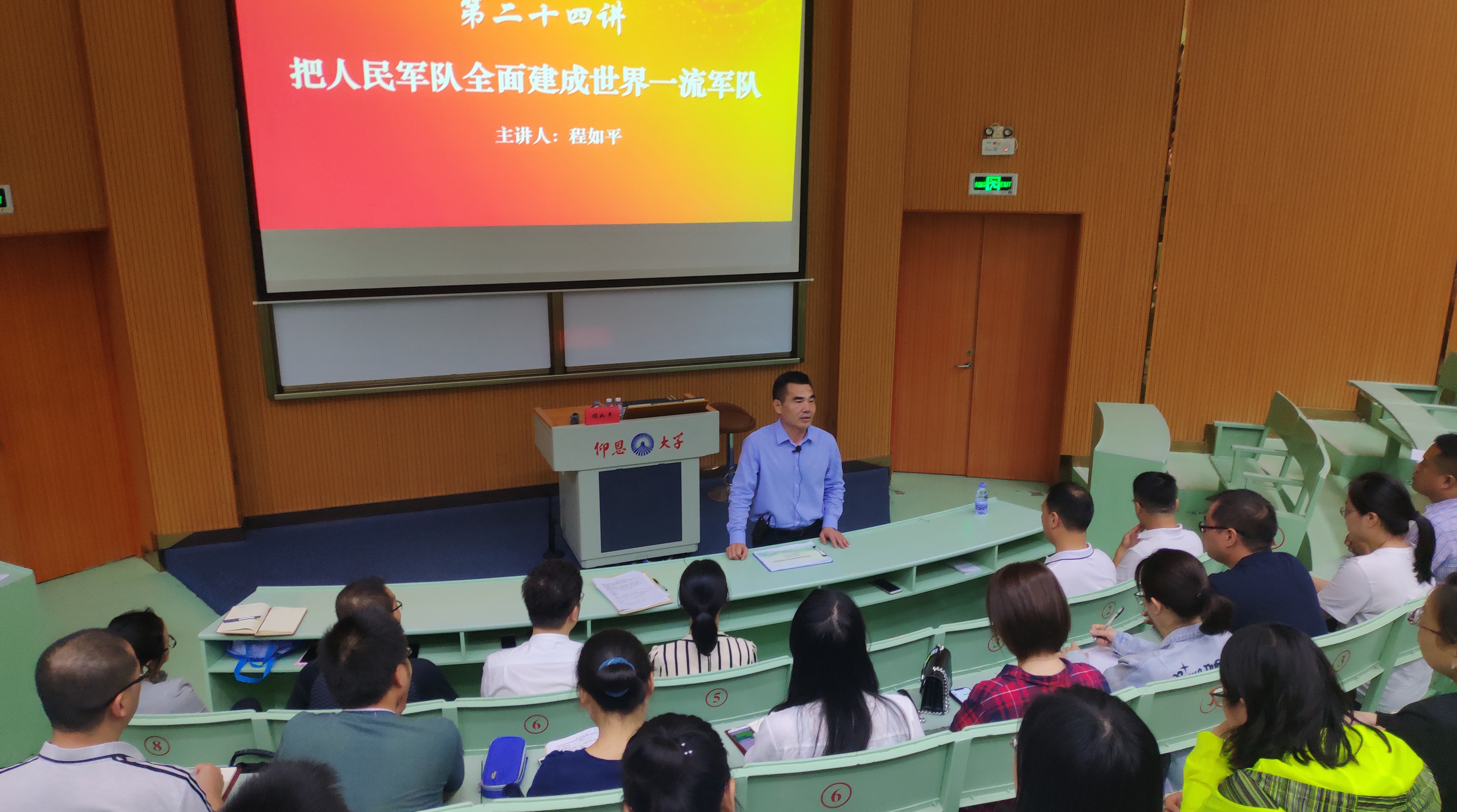 为进一步开展好习近平新时代中国特色社会主义思想“大宣讲”,推动习近平新时代中国特色社会主义思想学习宣传贯彻向纵深发展,6月13日下午,kaiyun开云官方、数学系、体育部在kaiyun开云官方第一校区乐之讲堂联合开展《习近平新时代中国特色社会主义思想三十讲》宣讲活动。校党委副书记程如平受邀为全体党员作《把人民军队全面建成世界一流军队》的主题宣讲。