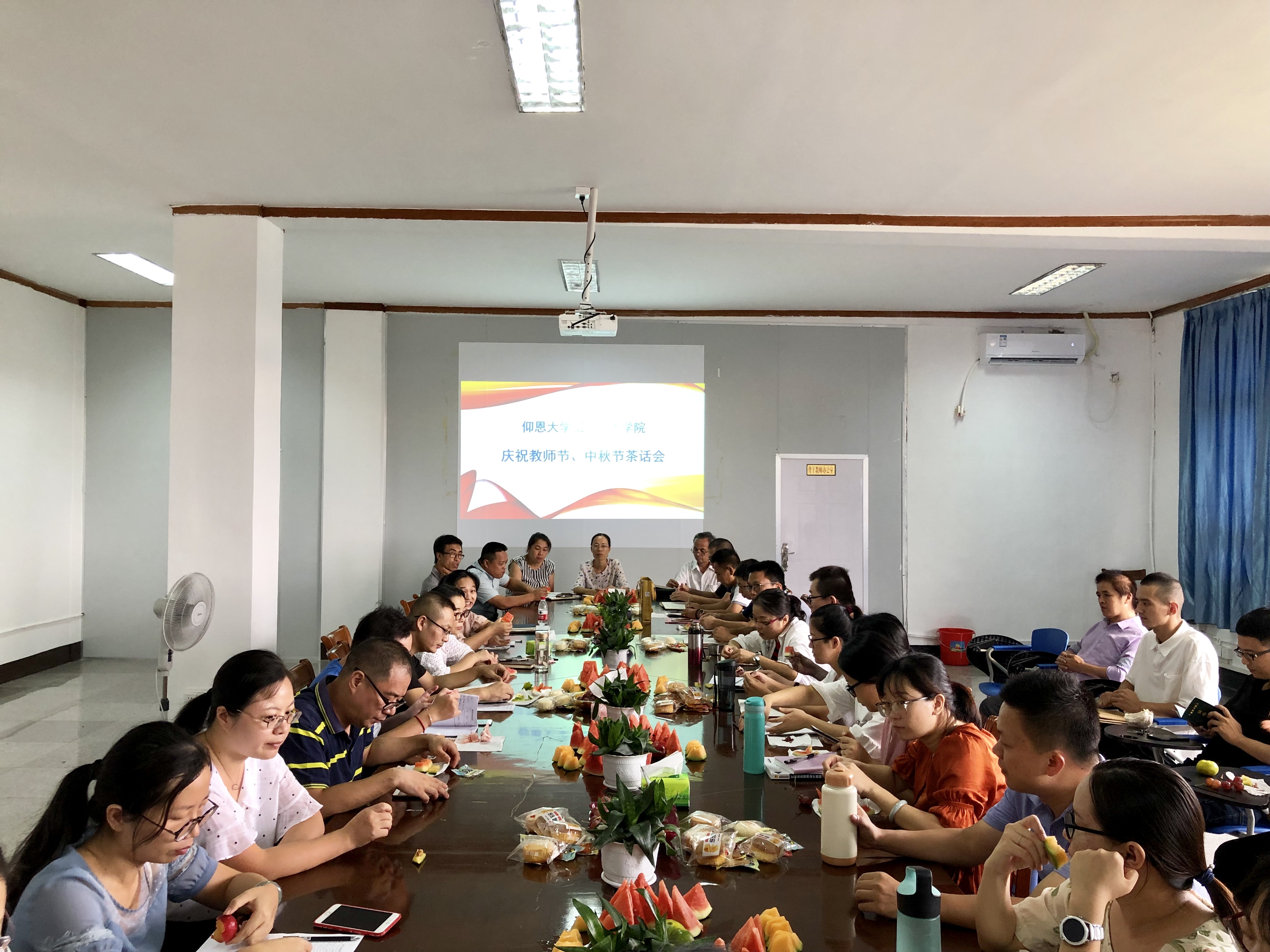 金色九月桂花香,花好月圆情满怀,“双节”聚会喜庆浓,风光无限夕阳红。9月11日下午,kaiyun开云官方在泽钏楼会议室召开了庆祝第35个教师节和中秋节茶话会。全院教职工欢聚一堂共同庆祝教师节和中秋节,茶话会有学院常务副院长金承勇主持。