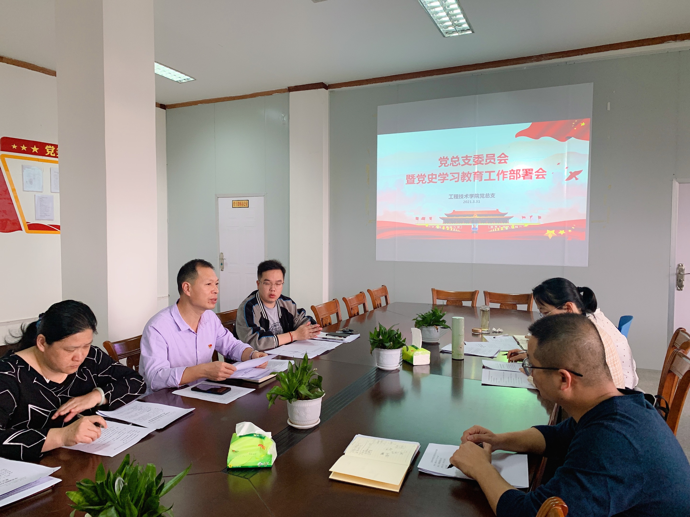 最后,与会成员联系思想与工作实际,针对学院党史学习方案进行讨论。大家一致表示,要深入学习党史内容,并面向学生开展党史教育,把党史教育作为一项重大政治任务,党史学习教育要落实到推动学院发展,要从细微处着手,更好地帮助教职员工解决后顾之忧。