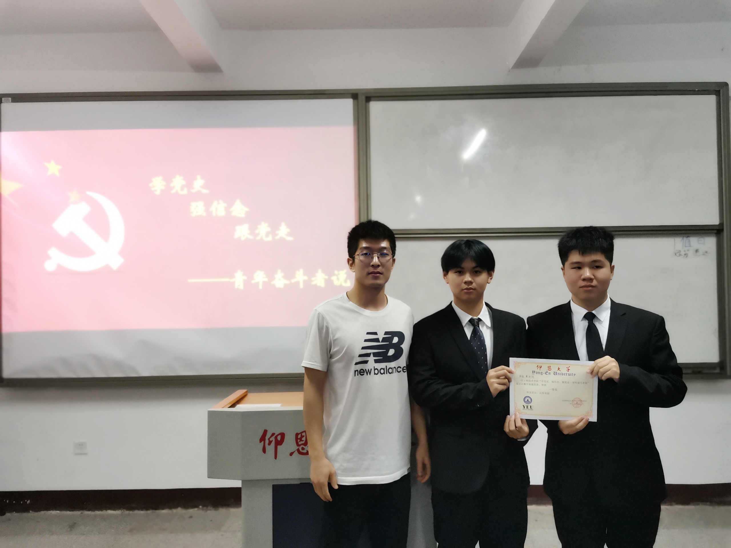比赛中,来自不同年级不同专业的选手们精神饱满、朝气蓬勃。有的通过讲述党的光辉历史,弘扬党的丰功伟绩;有的从国家、民族的角度谈如何爱党、爱国;有的结合自身学习、工作,畅谈人生理想、讲述身边党员好故事、好榜样;有的就“学党史·强信念·跟党走”畅谈对党史学习的体会、理解和感悟……比赛现场高潮迭起,掌声不断,有从自己喜欢的一首歌曲入手,有双人演讲,角度独特新颖、形式丰富多彩。经过激烈角逐,最终20电气2班陈敏、蔡澎鸿荣获一等奖;20电气1班黄俊鑫,20计科1班游文豪、游彬获得二等奖;20计科2班黄翔飞、郑美晨,19电子1班吴涛、吴昕怡、丘舒琪,19电气1班张家祺、陈志杰、张秋虹、林小红获得三等奖。