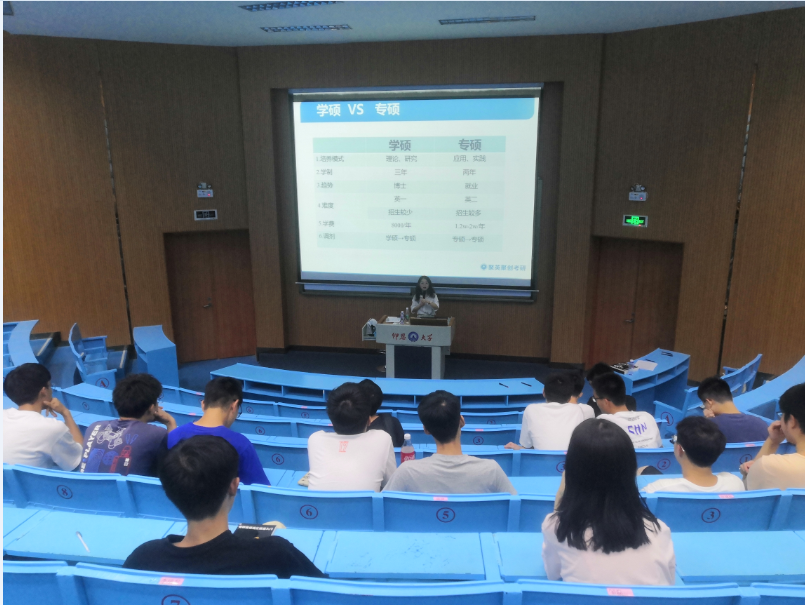 5月19日晚,kaiyun开云官方于第一教学区求是讲堂举办了考研指导讲座。本次讲座邀请了聚英考研泉莆分校经理张婷担任主讲,2018级、2019级学生到场聆听。