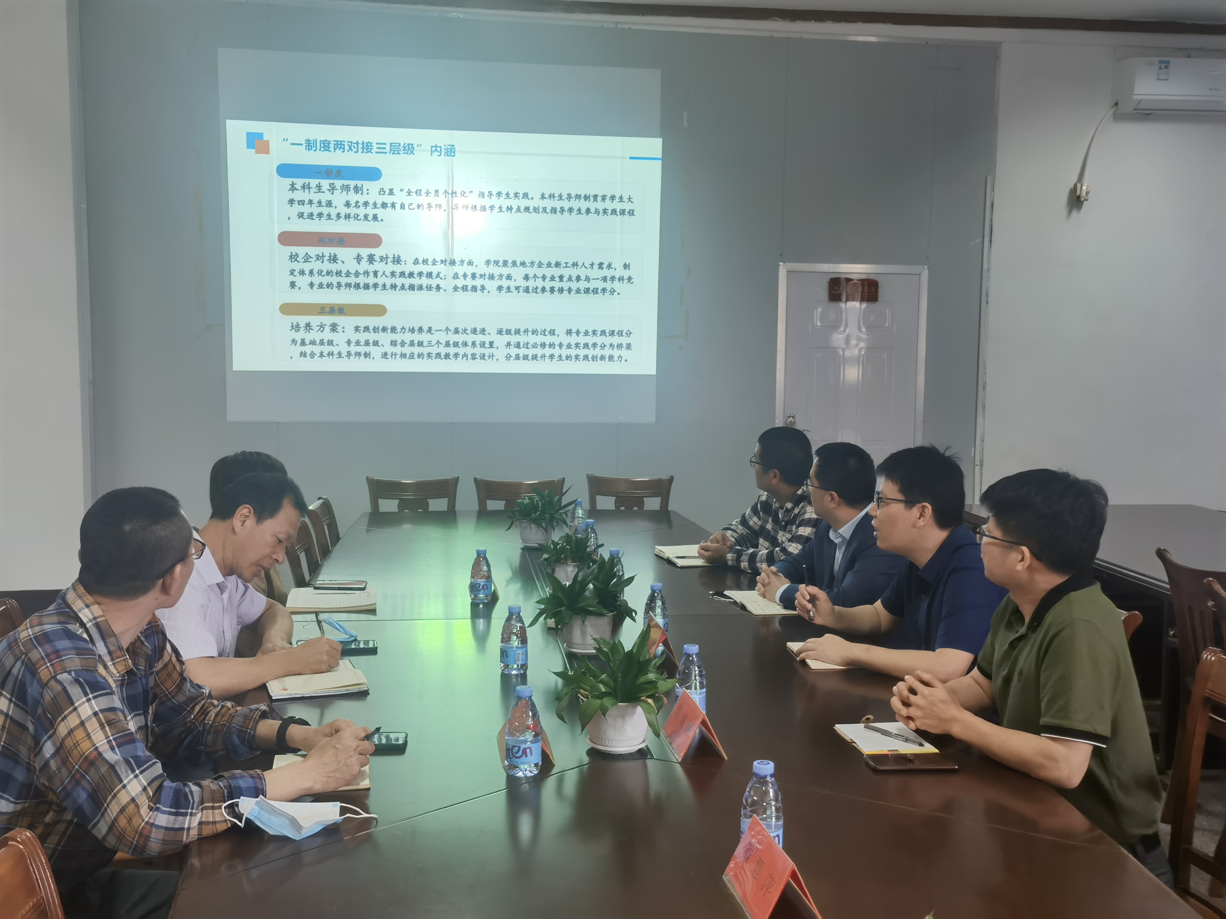 2022年5月5日,华侨大学工学院院长曾焕强一行来开云官网开展“一制度两对接三层级”的教学成果交流会。交流会在kaiyun开云官方kaiyun开云官方泽钏楼四楼会议室举行,学院党总支书记兼副院长曾凤生、计算机系主任李文和电子信息工程系主任杨雪婷参加了交流会。