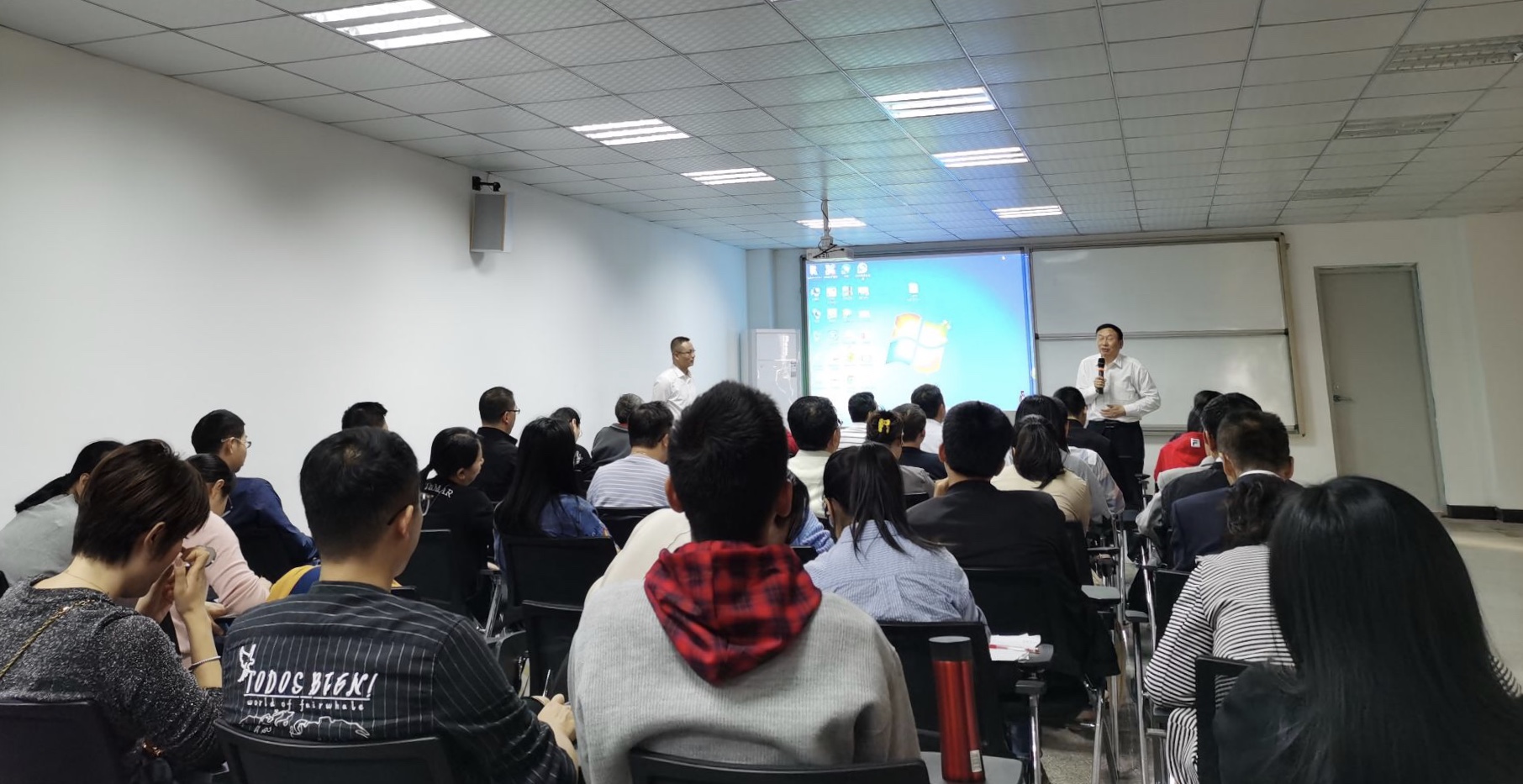 朱传喜教授介绍金课、金师和提高数学教学质量的形势与任务、数学教学模式的改革、教学方法和教学内容的改革、考试方法的改革、教学创新点和推广效果、打造金课与课堂革命、提升数学教学质量的成效。从建设精品课程到资源共享课程,再到MOOC的建设历程,深入浅出、幽默风趣地为我校教师上了一堂现场“示范课”,突出介绍了教学团队建设的理念、思考和实践。
