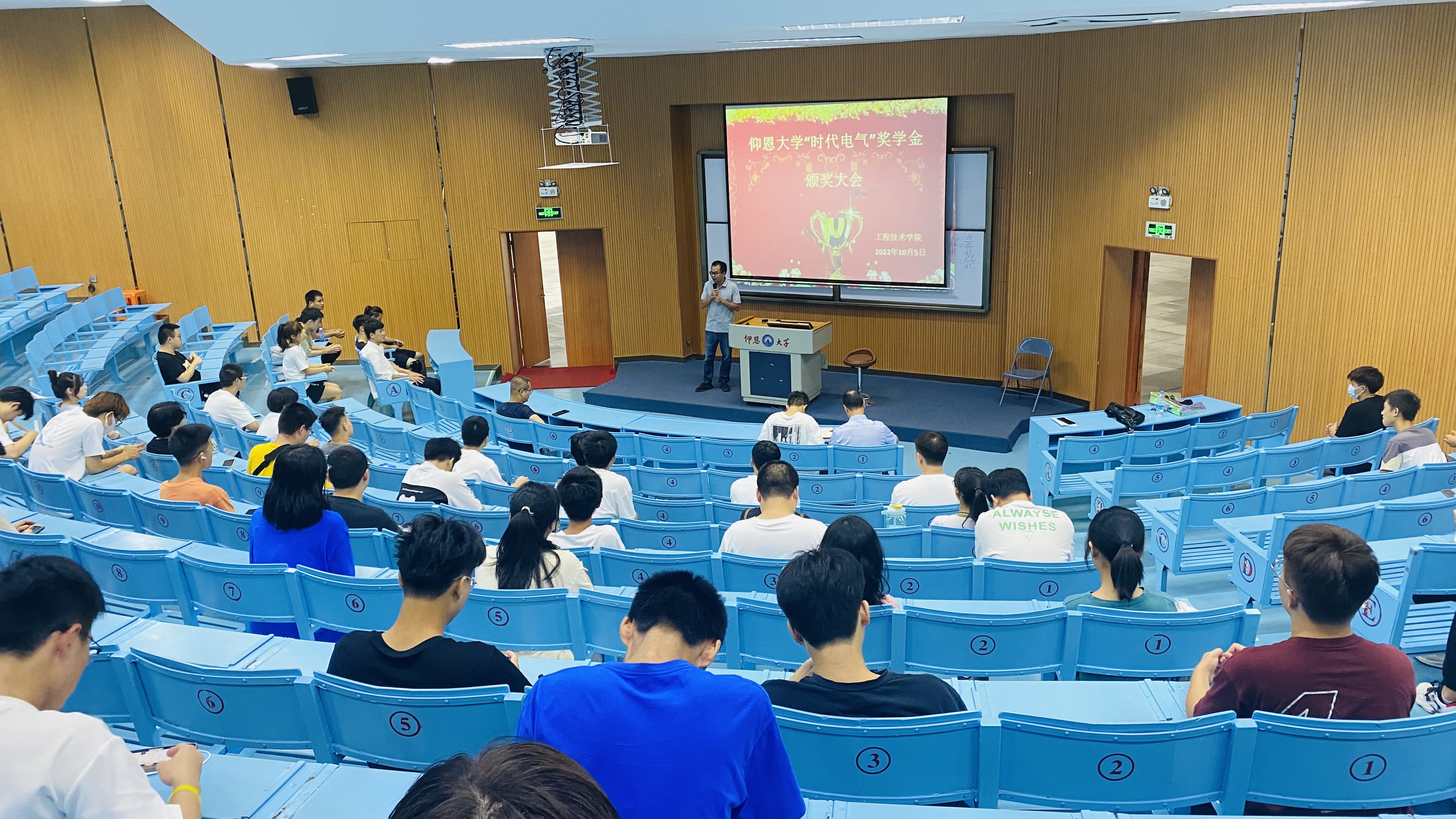 10月5日下午4时,kaiyun开云官方首届“时代电气奖学金”颁奖仪式在第三教学区和昌楼海纳讲堂顺利举行。学院常务副院长金承勇、学院党总支书记曾凤生、党总支宣传委员裴爱瑶和学院团委书记徐凯迪以及2022级电气系全体学生参加了本次活动。颁奖仪式由电气工程及其自动化系主任陈永健主持。