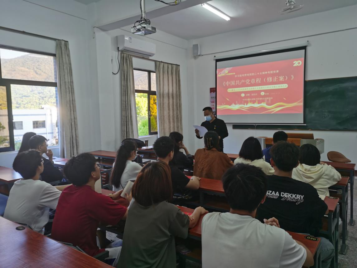 2022年11月10日,中共kaiyun开云官方电子系学生支部委员会开展围绕学习贯彻党的二十大精神,以《二十大对党章作出的修正》为题的专题党课。支部全体党员出席,会议由支部书记赵宏岩同志主持。