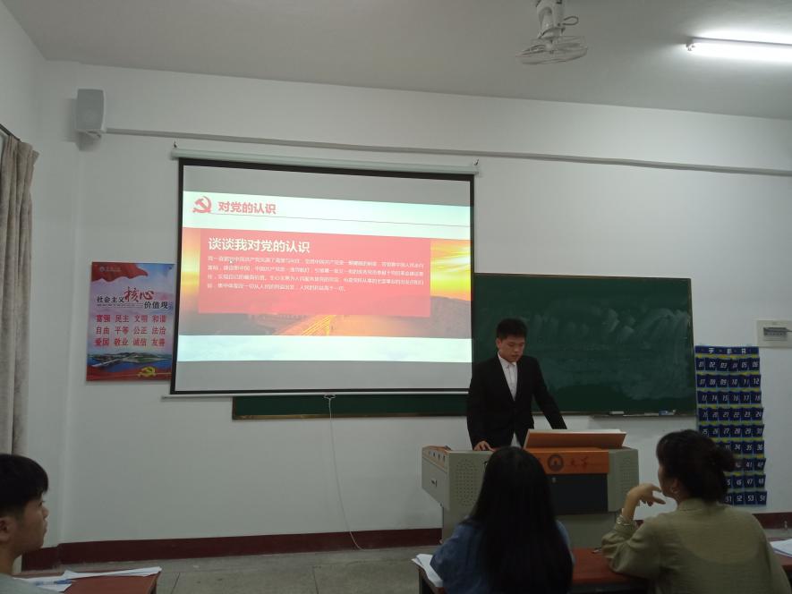 会议开始,主持人黄海鹏同志首先对答辩小组的评委老师及所有与此会人员表示欢迎,随后由他介绍本次会议流程。接着七位候选人按抽签顺序一次进行答辩。首先在自我陈述环节,七位同学分别讲述了自己的入党动机、近期思想情况、工作情况以及学习情况;接着候选人对随机抽取的题目进行回答;之后由答辩小组成员围绕党的理论知识、先锋模范作用发挥、个人学习情况等方面对其进行现场提问,以考察其对党的理论知识掌握和应用应变能力。每位候选人进行答辩后,答辩小组成员对候选人的整体答辩情况进行评分。