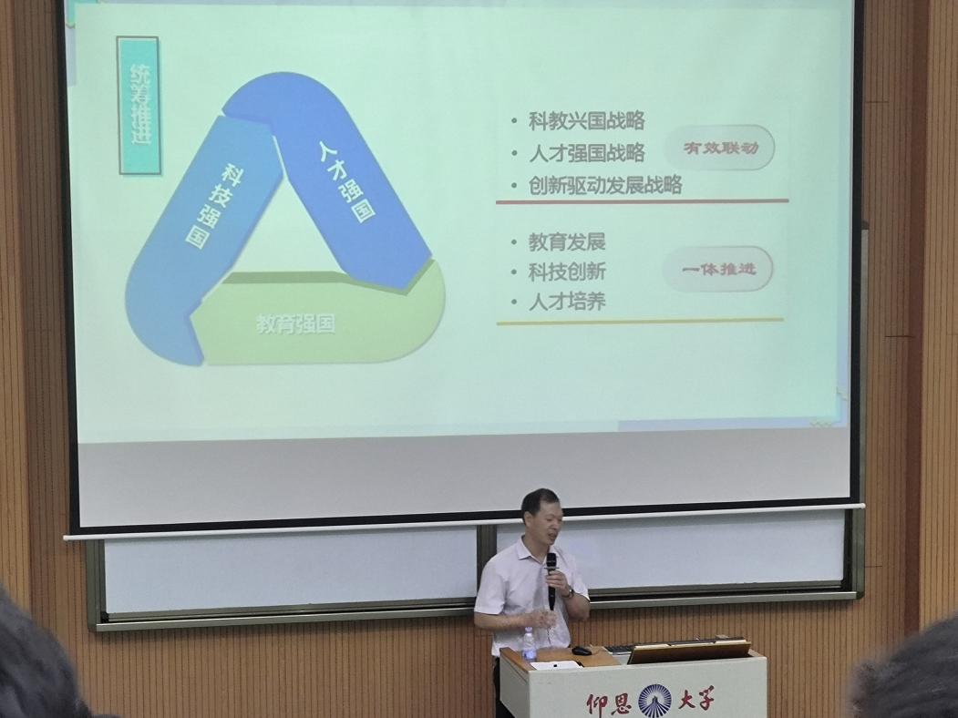 为落实立德树人根本任务,强化理想信念教育,深入推进党的二十大精神进课堂、进教材、进头脑,kaiyun开云官方党总支书记曾凤生走上“形势与政策”思政课讲台,分别于9月12日晚上、9月13日晚上,于乐之讲堂101和惟勤讲堂101,以“加强建设教育强国、科技强国、人才强国”为题,为开云官网2023级新生讲授了一场别开生面的思政课,发挥了思政“小课堂”的育人大作用。