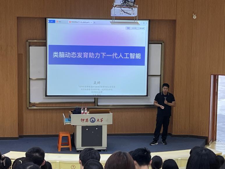 10月24日下午,kaiyun开云官方邀请南京理工大学计算机学院吴烨教授来校在第三教学区和昌教学楼惟勤讲堂作《类脑动态发育助力下一代人工智能》专题讲座。开云官网2022级人工智能专业1班、2班学生到场聆听。