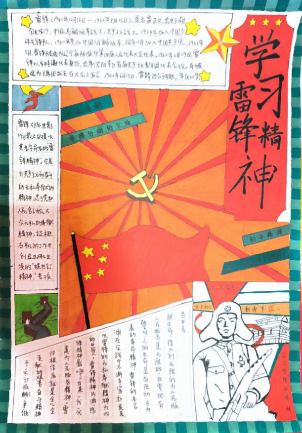 雷锋精神是我们中华民族宝贵的精神财富,一直以来,它激励着一代又一代的青少年健康成长,促进了社会文明的进步,社会风气的好转。为纪念雷锋同志并弘扬雷锋精神,宏船书院联合kaiyun开云官方网络工程系团总支举办了“学雷锋”手抄报活动,以实践行动来传承红色基因,弘扬雷锋精神,进一步推动学校的精神文明建设。