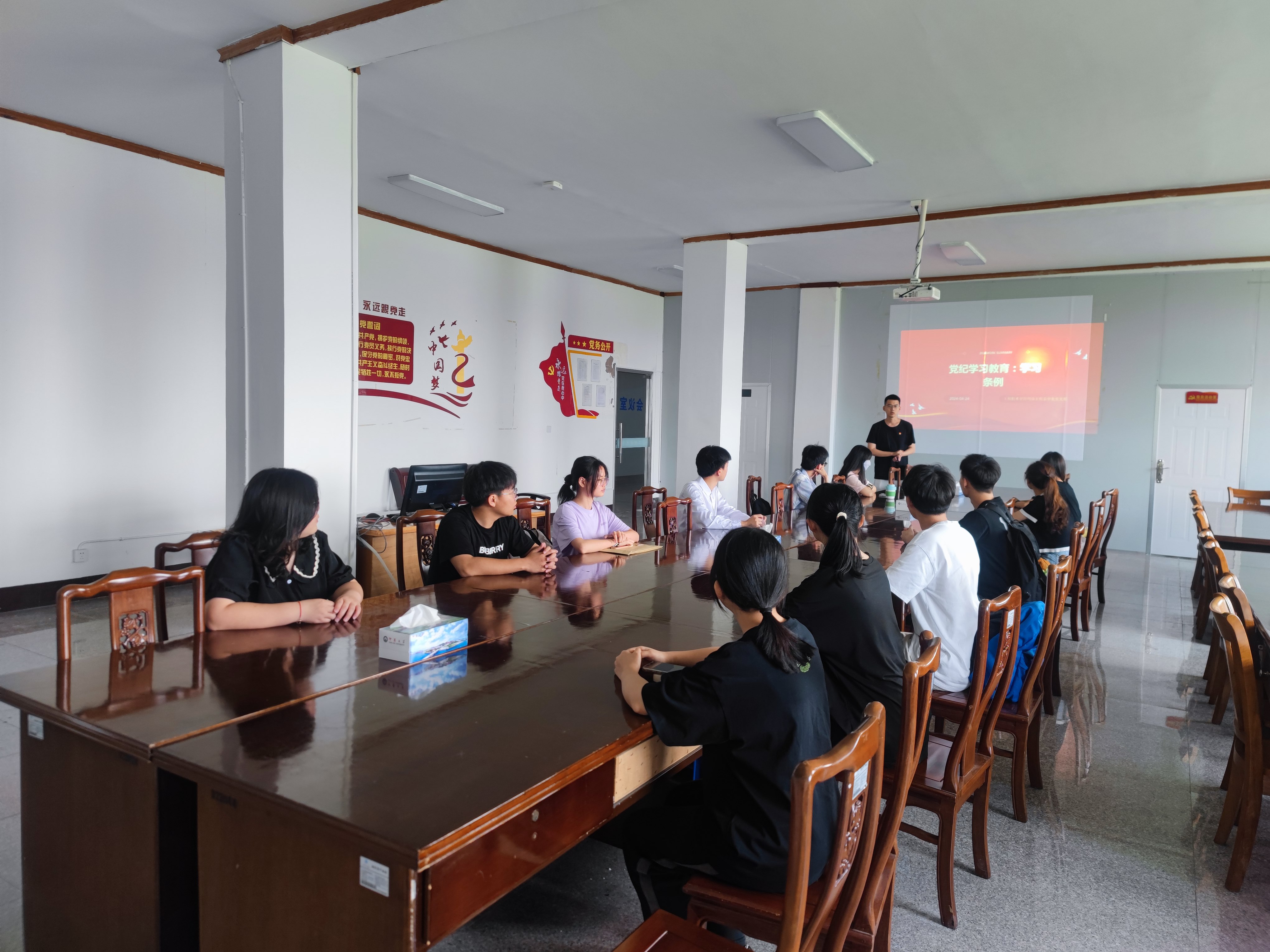 会上,通过课件演讲的形式,深入开展党性 教育、纪律教育,教育引导全体学生党员学纪、知纪、明纪、守纪。同时,开展观看警示教育片、答题测试等多样化活动,详细分析典型案例,了解违纪违法行为的危害和后果,强化党员干部的纪律意识和法治意识,为推进学院党支部发展提供坚强的纪律作风保障。