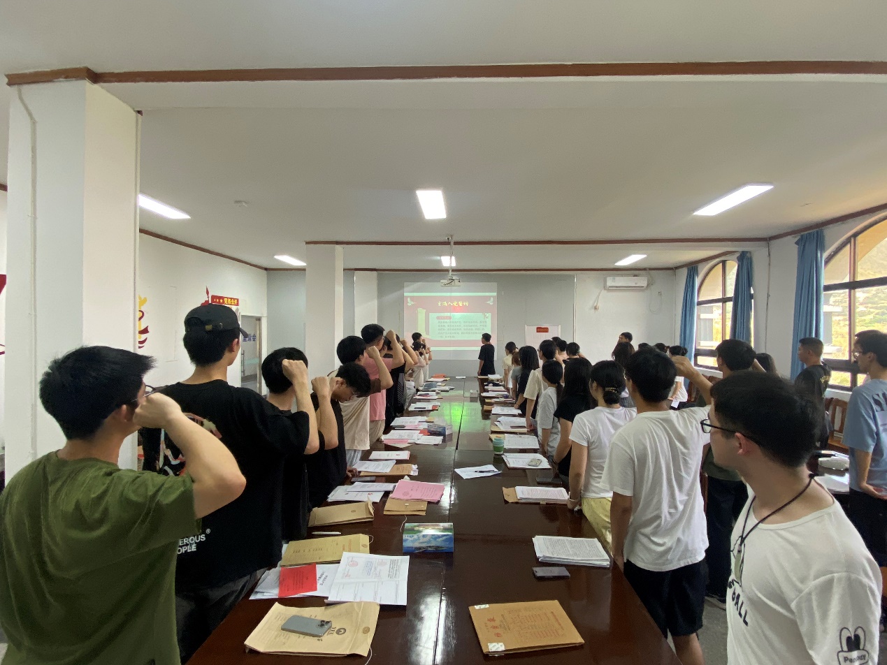6月24日,网络工程系学生党支部毕业生行前教育党员大会之“重温入党誓词”活动在泽川楼四楼会议室举行。此次活动旨在进一步强化党员的党性意识,坚定理想信念,不忘初心、牢记使命。