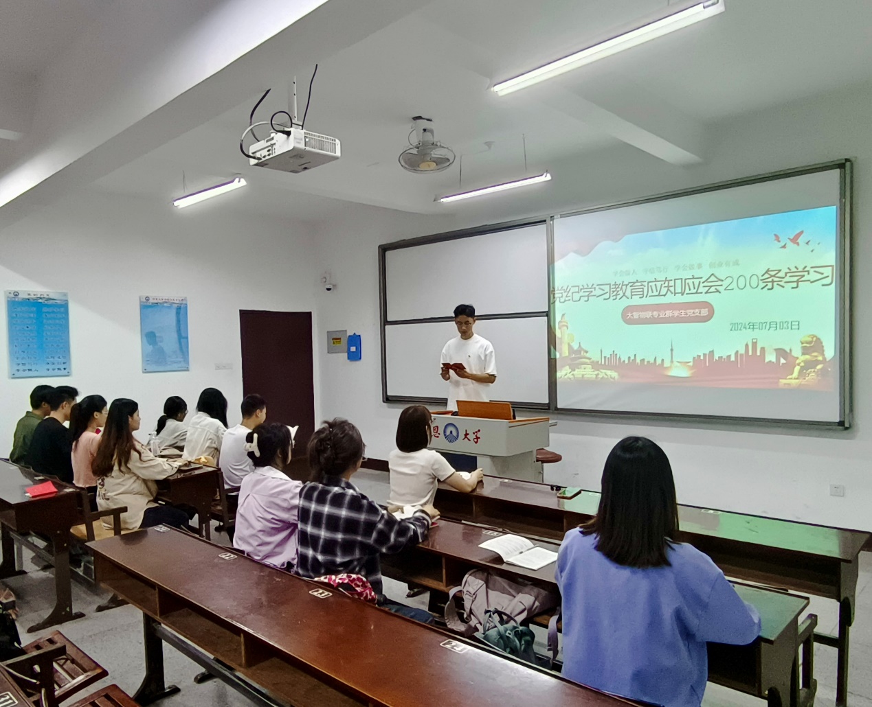 深入学习贯彻习近平总书记关于加强党的纪律教育的重要论述,推动党纪学习教育入脑入心走深走实,中共大智物联专业群学生党支部于73日下午在仰恩楼召开“党纪学习教育应知应会200学习