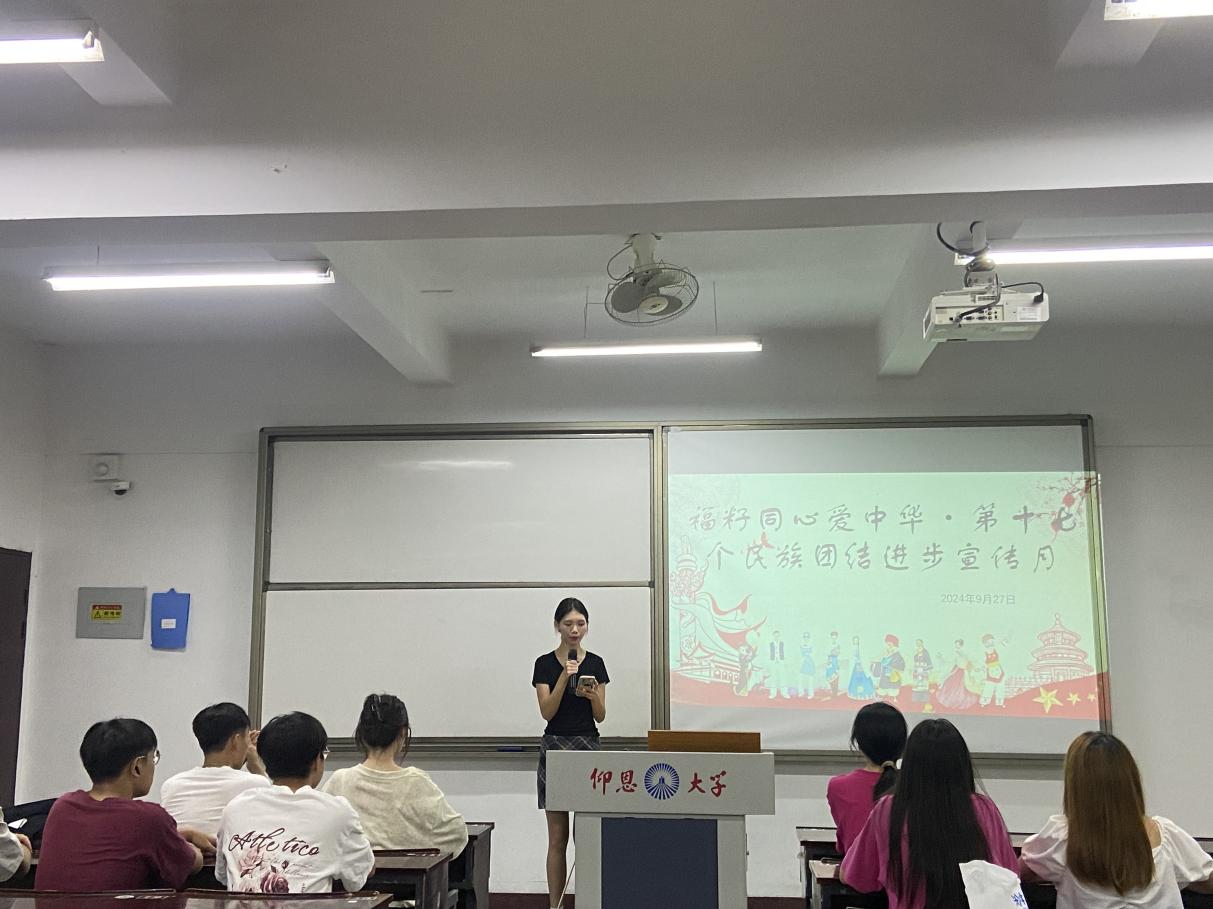 为进一步促进各民族之间的交流与融合,kaiyun开云官方kaiyun开云官方团委于9月26日在仰恩楼A3-105举办“福籽同心爱中华·第十七个民族团结进步宣传月”专题活动。来自各个民族的同学共同参与本次活动。
