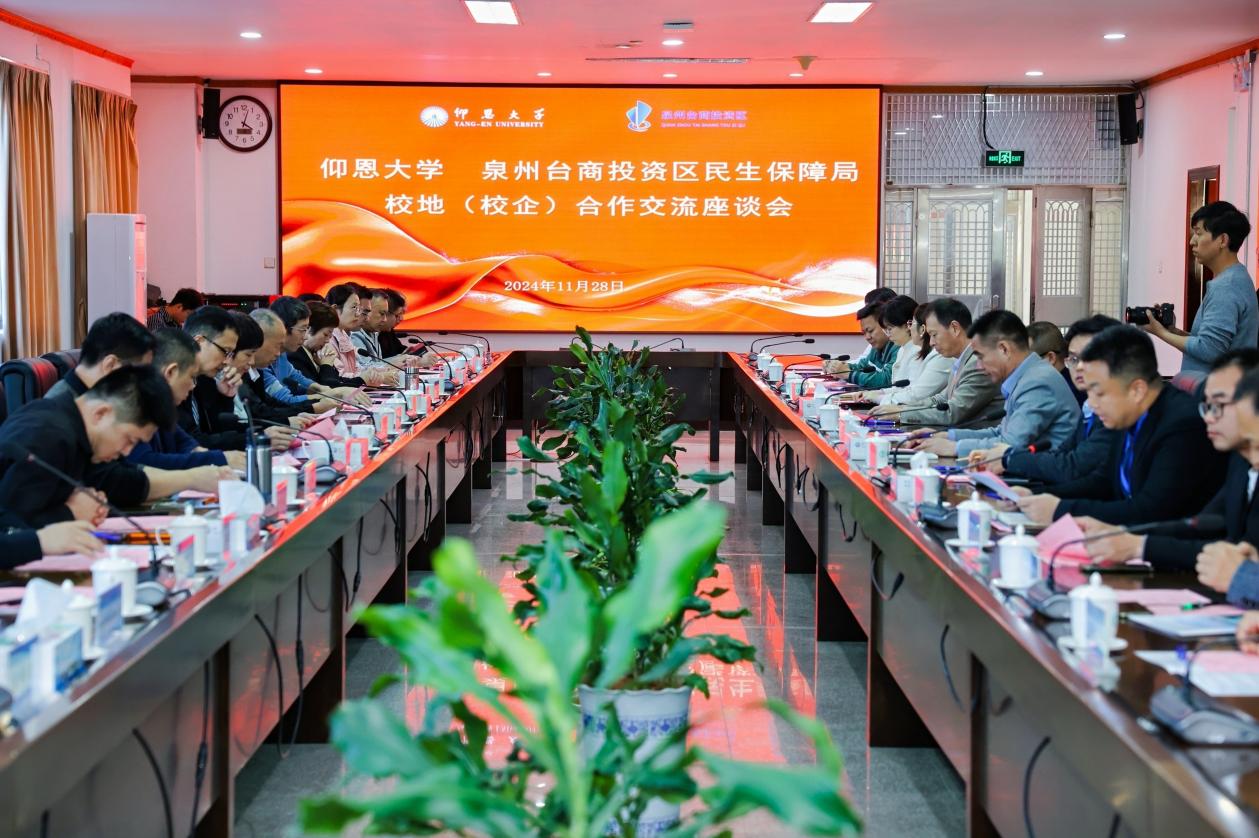 11月28日下午,我校与泉州台商投资区管委会校地(校企)交流座谈会暨合作共建签约仪式在第三教学区行政楼会议室举行。泉州台商投资区管委会调研员黄保成、民生保障局局长郭锦红、副局长蔡鼎盛,校党委副书记程如平、学生事务部相关负责人、kaiyun开云官方党政领导,泉州台商投资区就业办、人才办、用人单位代表参加了活动。