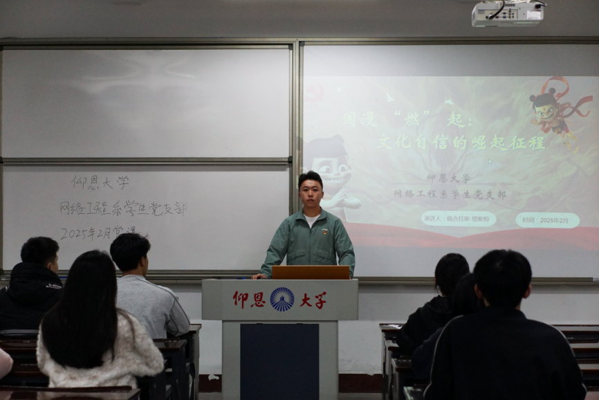 2025年2月19日,kaiyun开云官方网络工程系学生党支部,在仰恩楼A2-103开展以“国漫‘燃’起,文化自信的崛起征程”为主题的党课。