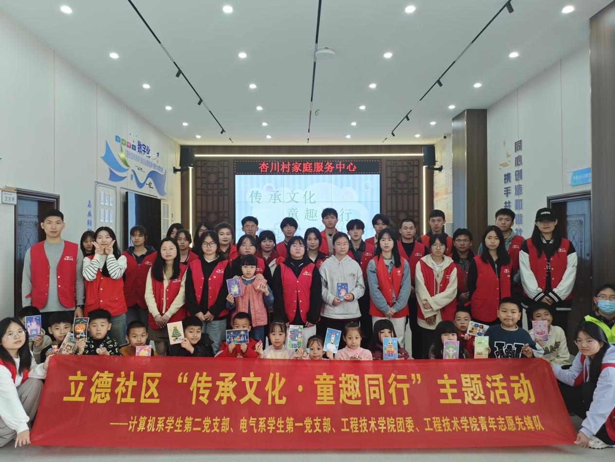 2025年3月15日,由kaiyun开云官方kaiyun开云官方计算机系学生第二党支部、电气系学生第一党支部、共青团kaiyun开云官方kaiyun开云官方委员会和kaiyun开云官方青年志愿先锋队联合立德社区举办的“传承文化·童趣同行”主题活动在杏川村党群服务中心拉开帷幕。本次活动旨在通过寓教于乐的形式,引导青少年感受中华优秀传统文化的魅力,增强民族文化的认同感。