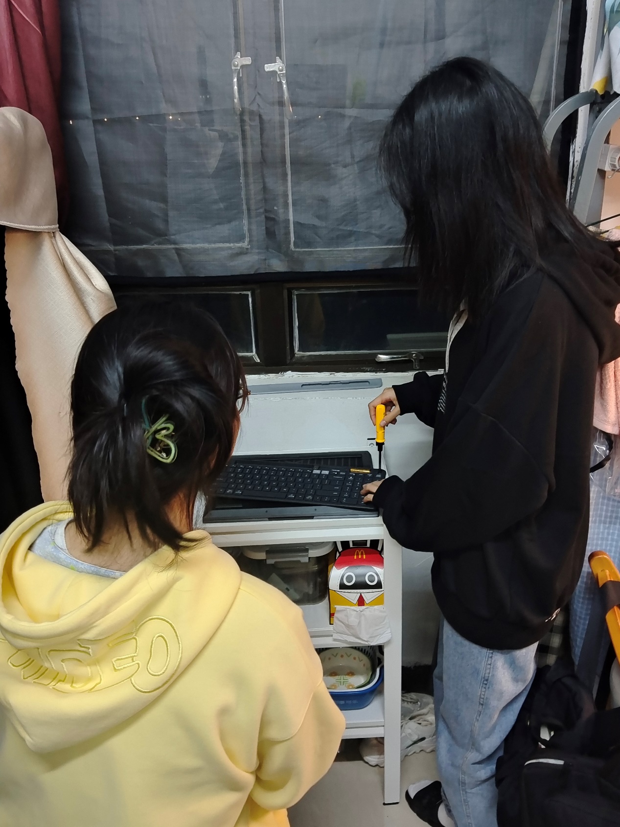 此次活动主要针对学生们日常使用的各类家电进行免费维修,包括但不限于电脑键盘、鼠标、小型电风扇等常见电器设备。电子数模协会的成员们凭借自己扎实的专业知识和熟练的操作技巧,耐心细致地为前来求助的同学解决了各种问题,让许多原本需要更换或废弃的小型家电重新焕发了生机。