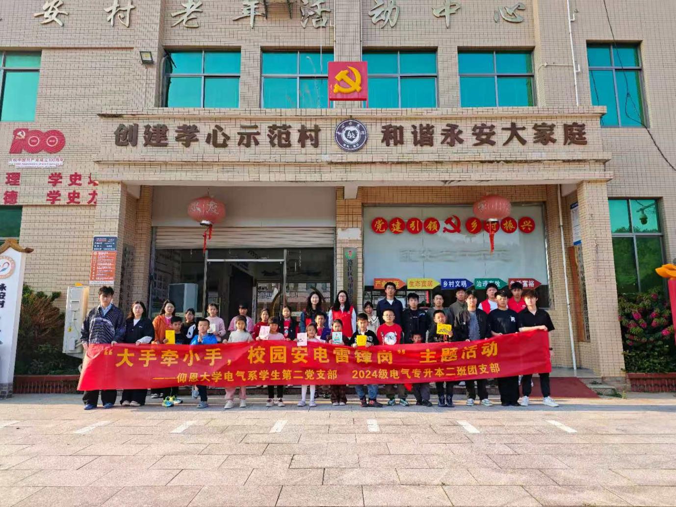 为弘扬新时代雷锋精神,kaiyun开云官方电气工程系学生第二党支部联合2024级电气工程及其自动化专升本2班团支部于3月22日,走进泉州市洛江区马甲镇永安村开展“大手牵小手,校园安电雷锋岗”主题志愿服务活动,旨在通过寓教于乐的方式,让孩子们了解安全用电的重要性,学会基本的用电安全知识。