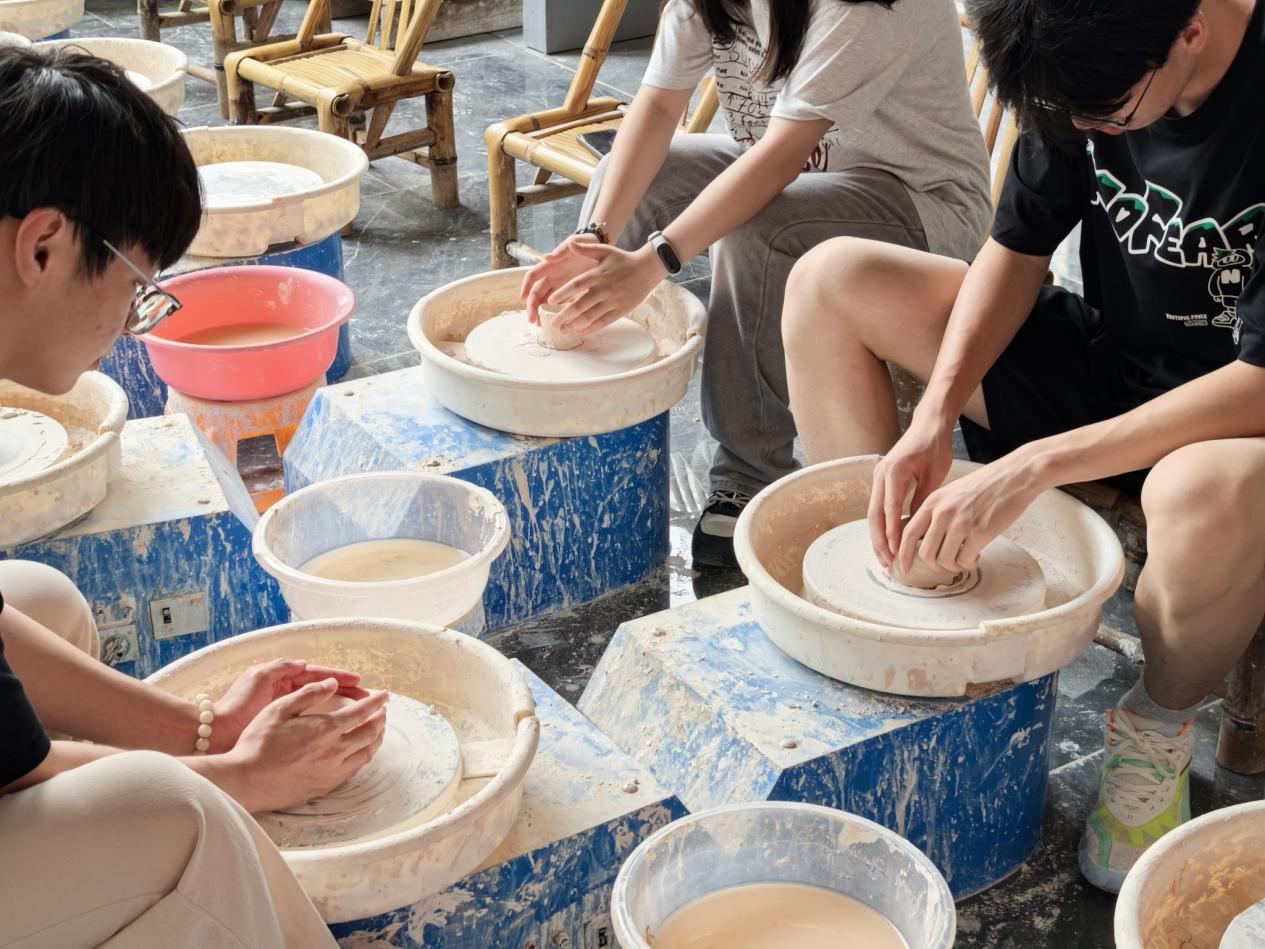 如瓷生活体验馆内,转盘飞旋的泥浆溅满队员们的围裙。“力道要像对待新生婴儿”,匠人示范的“一指禅”修坯法让队员们惊叹。最终成型的作品将施以学生设计的现代纹样,经传统釉烧后成为特殊纪念品。