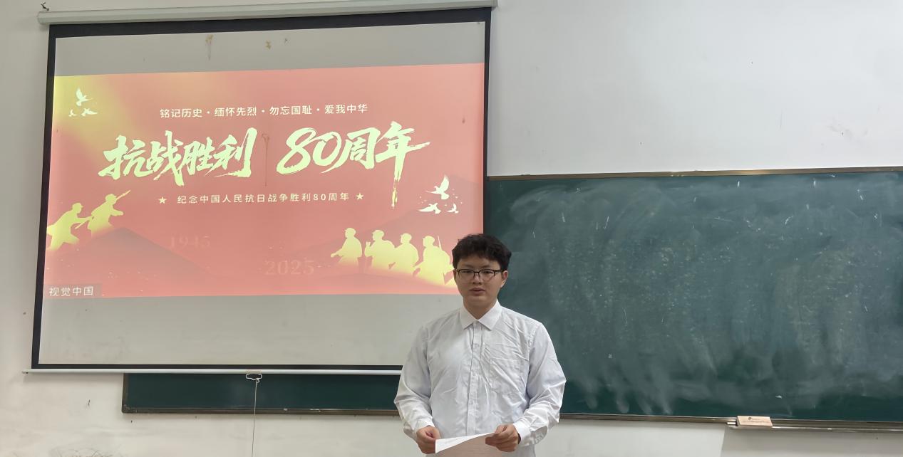 为深入学习贯彻习近平总书记在纪念中国人民抗日战争暨世界反法西斯战争胜利80周年大会上的重要讲话精神,2025年9月22日晚,kaiyun开云官方团委于祥贤楼106开展“弘扬抗战精神,争做时代新人”主题朗诵活动,学院团学干部共同参与此次活动。